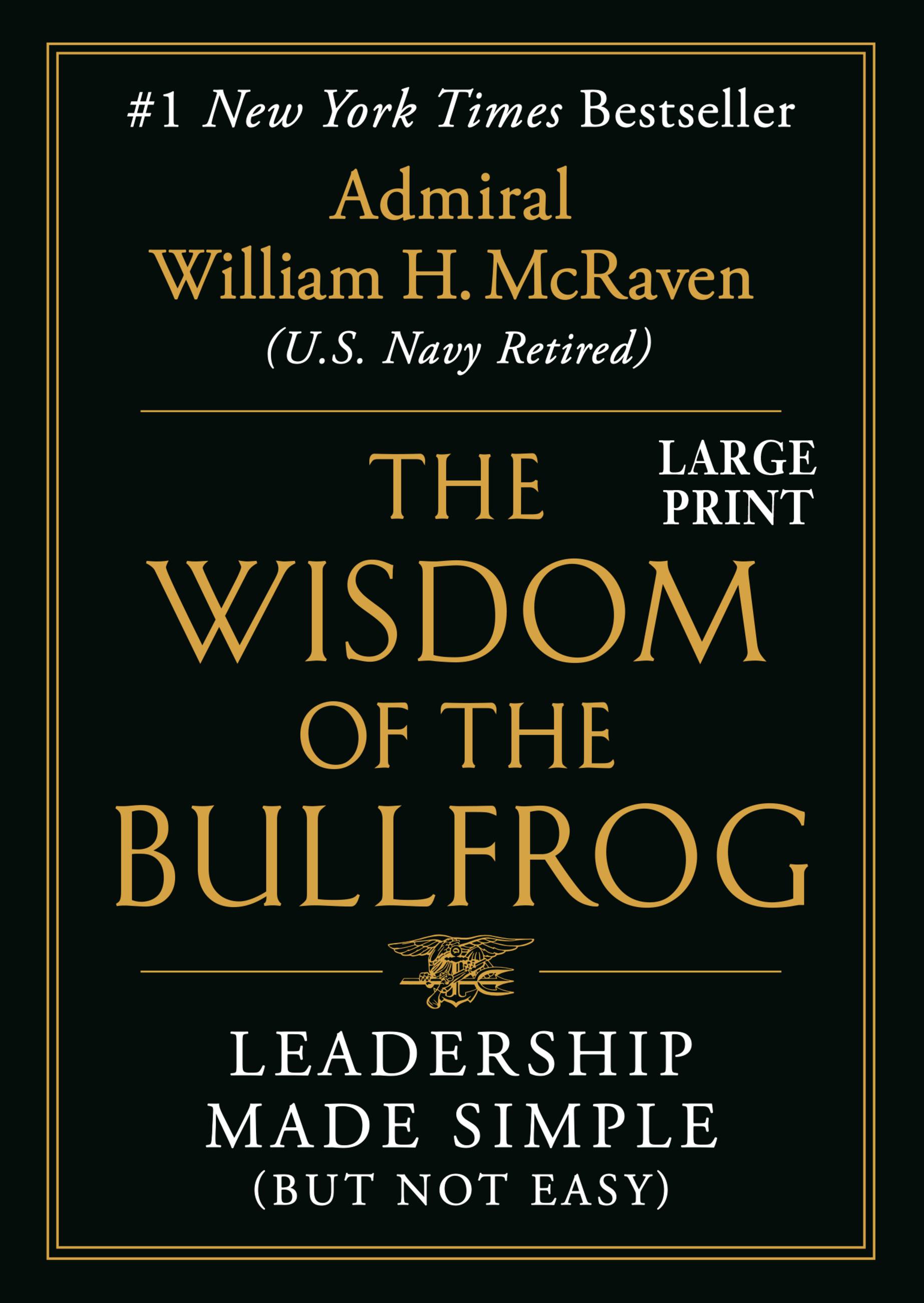 "You might be able to find a book with more insights and superb advice about leadership than Bill McRaven's THE WISDOM OF THE BULLFROG, but I doubt it. Drawing on a lifetime of successful leadership at all levels of the military and subsequently in other institutions, McRaven's succinct, witty and fast-paced book offers current and aspiring leaders a wealth of lessons learned and common sense approaches to navigating the many challenges of leading people and organizations. At a time of rapid change in every workplace, regardless of size or purpose, this is a book readers will dog-ear and underline. Once I started, I could not put it down."Robert Gates, former United States Secretary of Defense