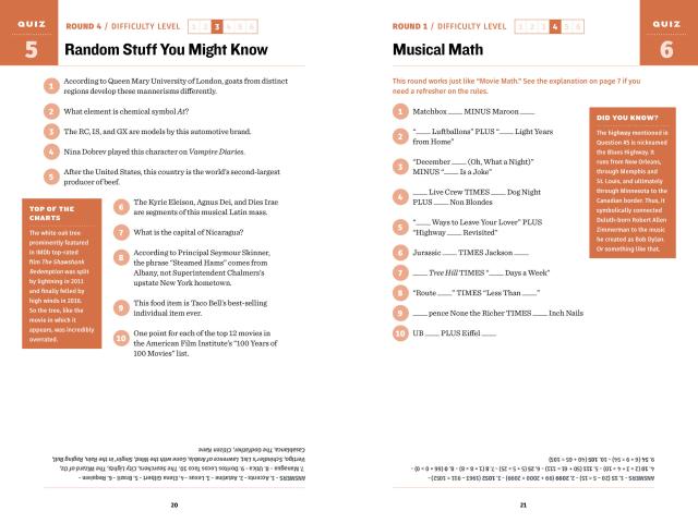 More than a random collection of facts, The Ultimate Book of Pub Trivia features over 300 rounds of ten-question quizzes. Each one is carefully curated to encourage a night of lively competition. The result? Hours and hours of fun as you and your friends answer challenging questions on everything from Bad Movie Descriptions to Winter sports, Kanye and the Kardashians to Brit Lit.