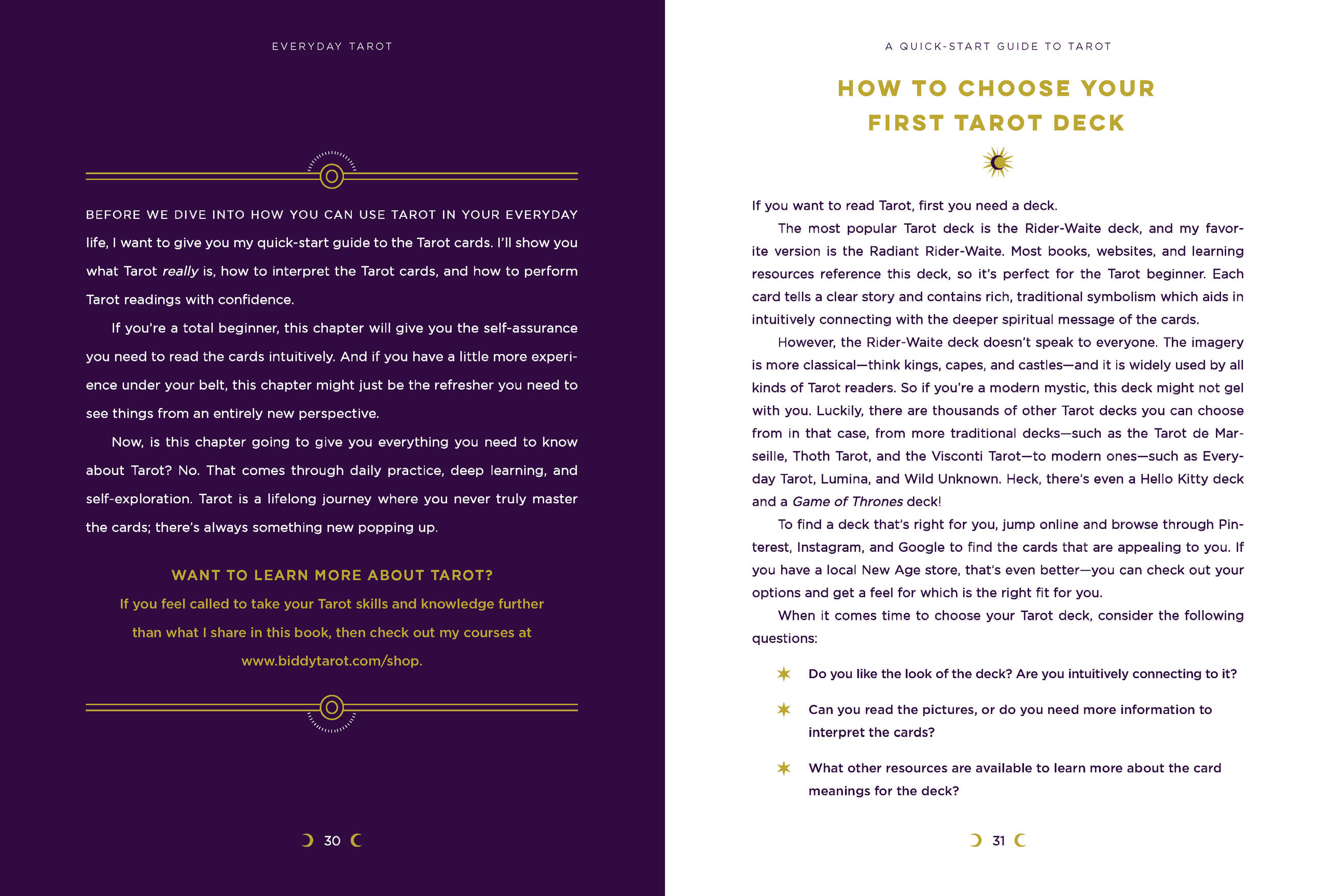 This approachable guide, from the founder of the incredibly popular website Biddy Tarot, brings the allure and guidance of Tarot to contemporary, goal-focused readers through relatable exercises and an emphasis on intuition. Everyday Tarot takes a fresh approach to a timeless art, giving modern soul-seekers the tools they need to access their inner wisdom and create an inspired life, using the cards as their guide. This approach to Tarot is empowering, uplifting, powerful, and practical — instead of helping readers tell the future, this method allows each person to unlock their full potential by connecting more deeply to their own instincts.