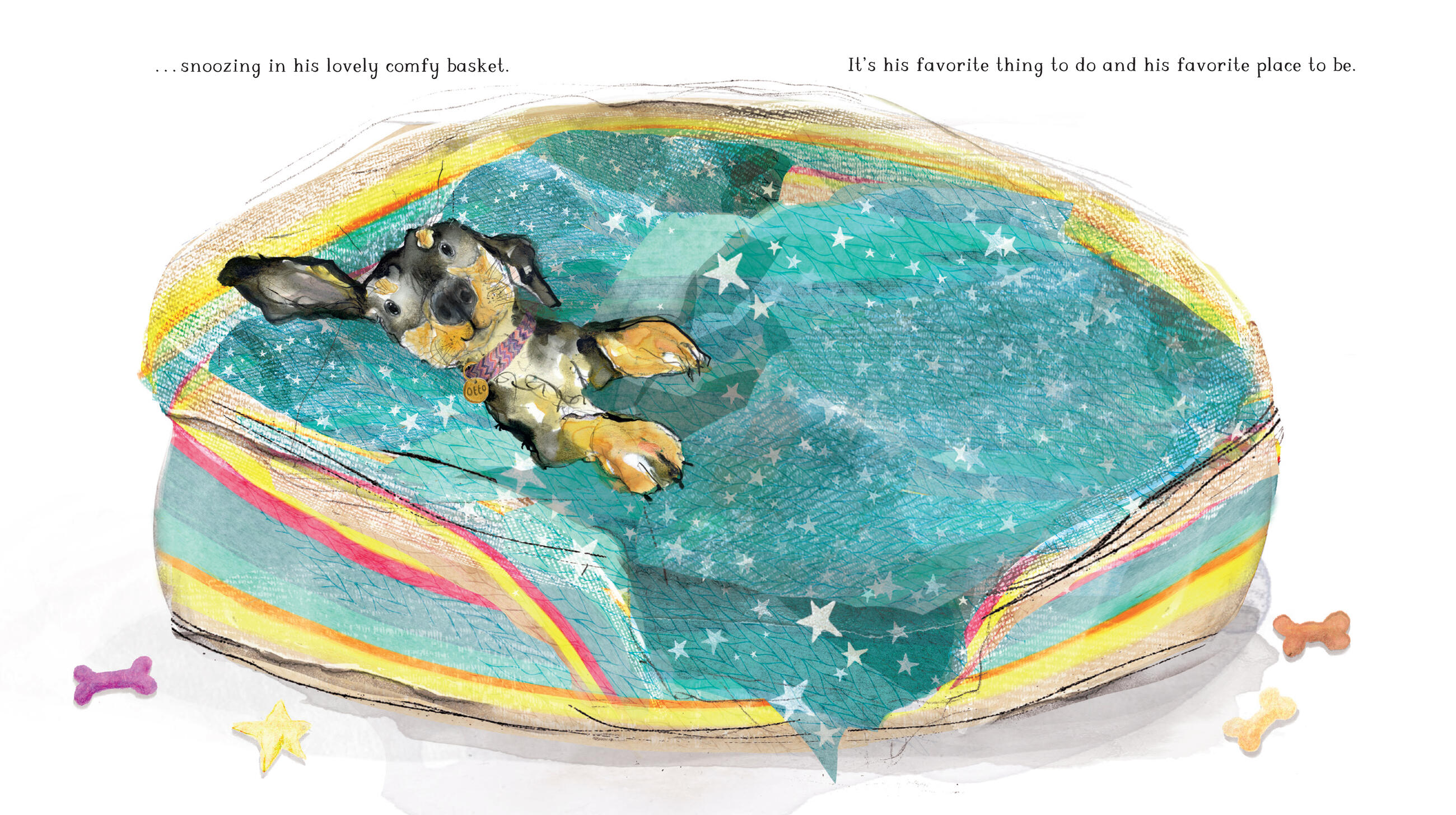Otto loves bone-shaped treats, sniffing, chasing a ball and walks in the parks. But more than anything, Otto loves lazing in his comfy basket. But Otto’s private, comfy time is upset when his friend, Lupin, comes to stay and shares his basket . . . not so comfy now!