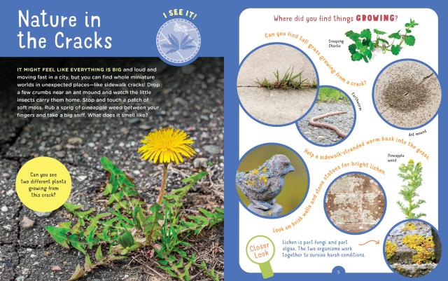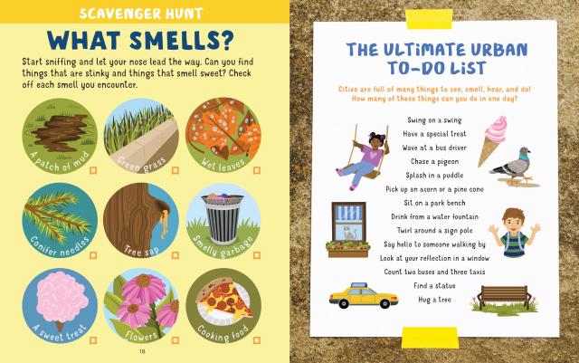 Discover hidden signs of nature in the city with this fun, interactive nature activity book for kids aged 4 to 8. Search and find birds, wildflowers, leaves, trees, squirrels, and more in urban areas, from green parks to apartment rooftops to parking lots.