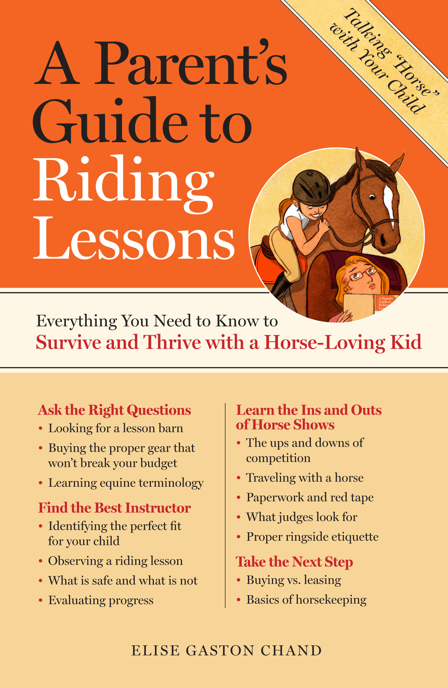 If you don’t know the difference between a bridle and a saddle but your child dreams of riding horses, this informative guide will answer all of your most pressing questions. Elise Gaston Chand provides informed and sensible tips on finding qualified instructors, the cost of lessons, safety concerns, and much more. Learn what to watch for as your child’s riding progresses, confidently steer your child toward rewarding competition experiences, and take pride in all of your child’s riding achievements.