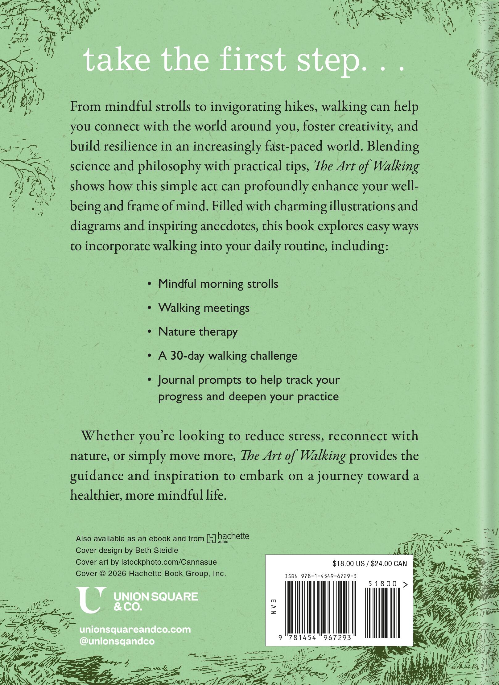 Filled with charming illustrations and diagrams, and inspiring anecdotes, The Art of Walking is as much a pleasure to read as it is to use. It features practical tips for incorporating walking into daily routines—from mindful morning strolls to walking meetings and nature therapy. The book also includes a 30-day walking challenge and journal prompts to help readers track their progress and deepen their practice.