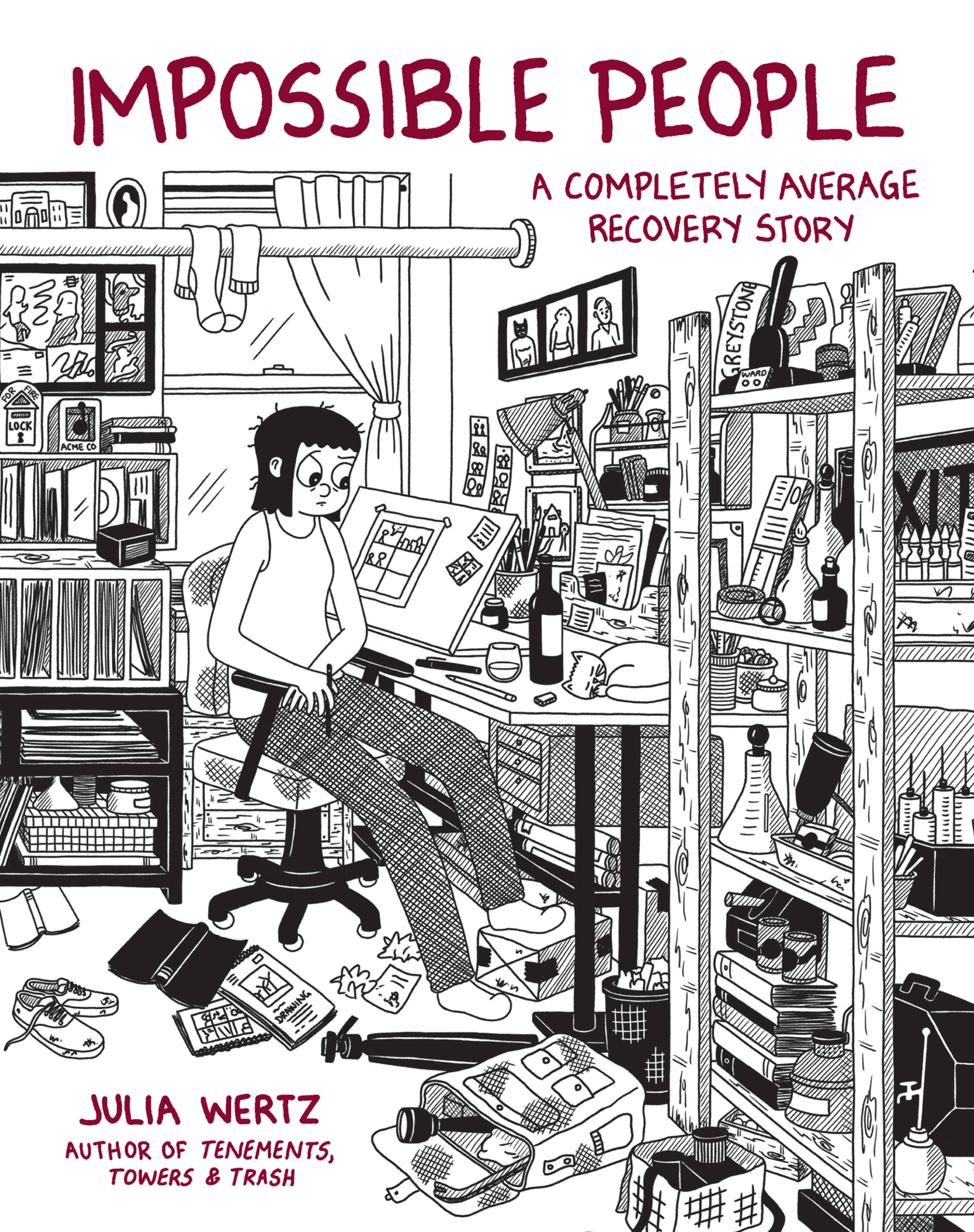 Opening at the culmination of a disastrous trip to Puerto Rico, the first page of Impossible People finds Julia standing stupefied in the middle of the jungle beside a rental jeep she's just crashed. From this moment, the story flashes back to the beginning of her five-year journey towards sobriety that includes group therapy sessions, relapses, an ill-fated relationship, terrible dates, and an unceremonious eviction from her New York City apartment. Far from the typical addiction narrative that follows an upward trajectory from rock bottom to rehab to recovery, Impossible People portrays the lesser told but more common story: That the road to recover is not always linear. With unflinching honesty and a healthy dose of humor, Wertz details the arduous, frustrating, and hilarious story of trying and failing and trying again.
