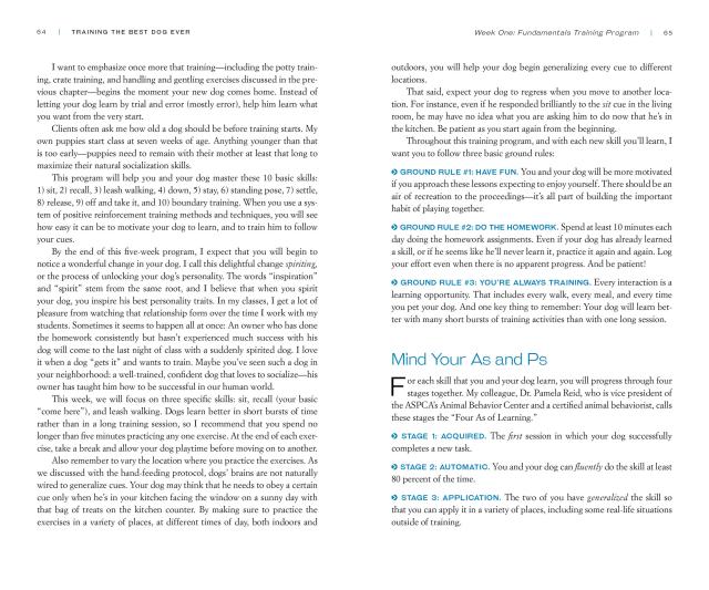 Training the Best Dog Ever relies on trust and treats, not choke collars; on bonding, not leash-yanking or reprimanding. The five-week training program takes only 10 to 20 minutes of practice a day and works both for puppies and for adult dogs that need to be trained out of bad habits. Illustrated with step-by-step photographs, the book covers hand-feeding; crate and potty training; and basic cues—sit, stay, come here—as well as more complex goals, such as bite inhibition and water safety. It shows how to avoid or correct typical behavior problems, including jumping, barking, and leash-pulling. Plus: how to make your dog comfortable in the world—a dog that knows how to behave in a vet’s office, is at ease around strangers, and more. In other words, the best dog ever.