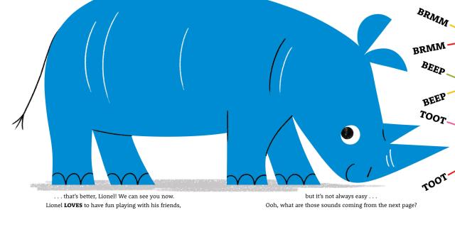 He loves joining in with whatever his friends are doing—but his enthusiasm leads to disaster when he pokes a real hole through the page. When he seeks out a quiet spot, Lionel finally finds his sweet spot: making the world’s greatest rhinocer-raft!