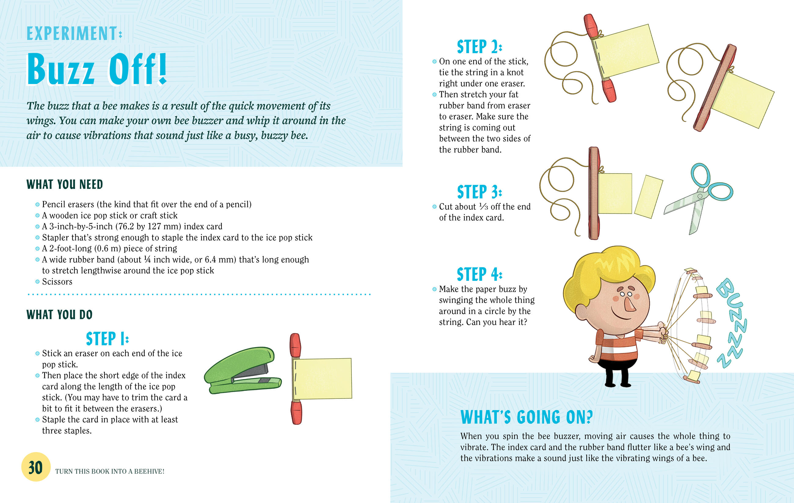 What a promise! Actually, promises. First, here’s a book that teaches kids all about the fascinating world of bees. Second, fun exercises, activities, and illustrations engage the imagination and offer a deeper understanding of bee life and bee behavior. Third, by following a few simple steps including removing the book’s cover and taping it together, readers can transform the book into an actual living home for backyard bees. Fourth, added all together, Turn This Book Into a Beehive! lets kids make a difference in the world—building a home where bees can thrive is one small but critical step in reversing the alarming trend of dwindling bee populations.