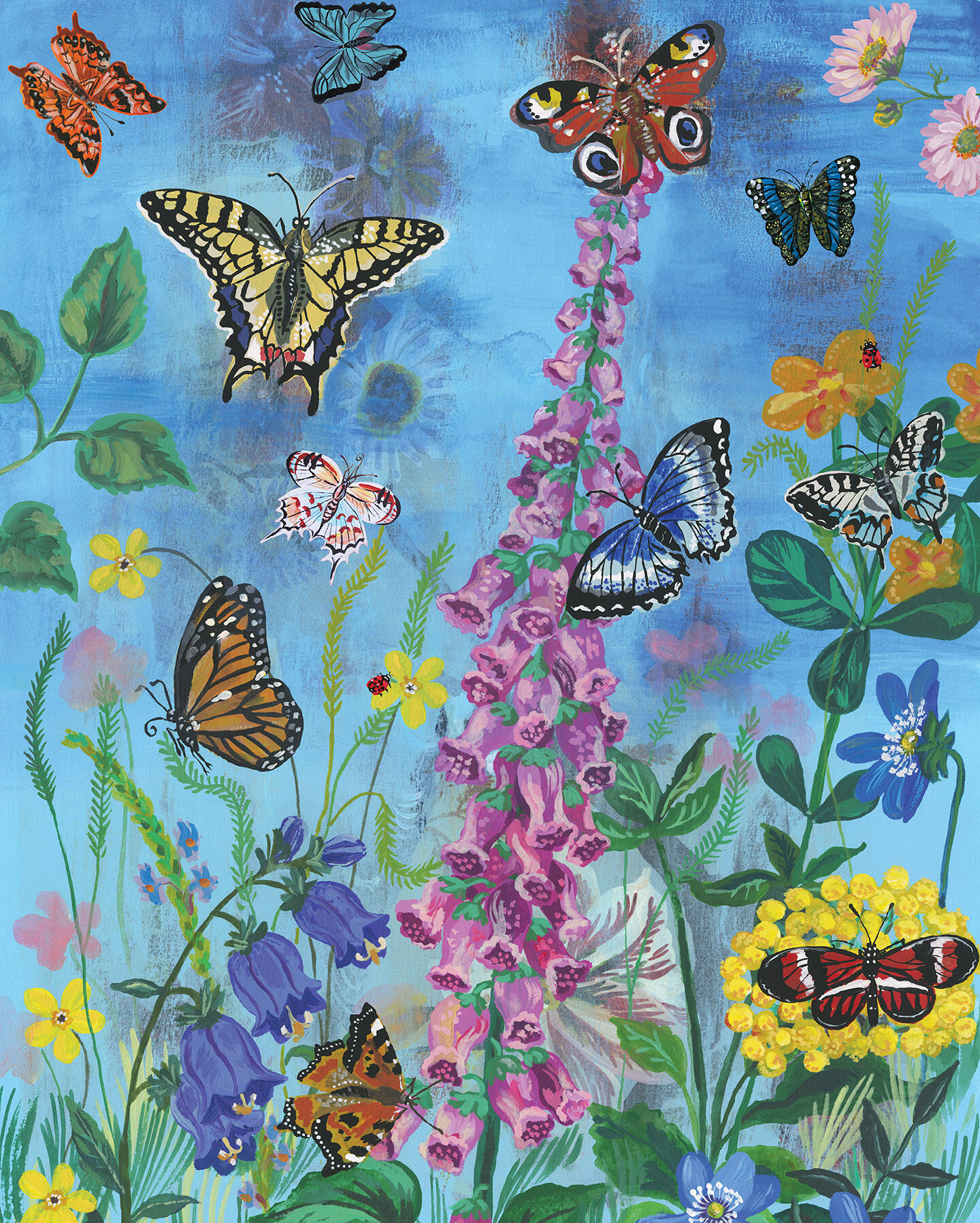 Like flowers with wings, butterflies hover and dance and display their beauty wherever the eye can find them. In this garden vignette, drift along with the magic of Nathalie Lété’s imagination, and revel in her breathtaking colors and imagery. And don’t forget the ladybugs.