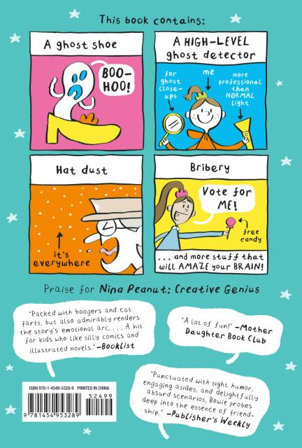 Nina Peanut’s life has just about calmed down since the big talent show of Nina Peanut: Creative Genius, when suddenly she latches onto two new obsessions: running for class president and ghost hunting! Based on—frankly sketchy—evidence, Nina is convinced that a shoe from a local museum is home to the ghost of a rich 19th century lady socialite! This goes over big with her classmates, so she’s got to prove that it’s a real haunting if she wants to win the class election. Only the conniving Megan Dunne (and Nina’s own “interesting” ideas) can stand in the way of victory!