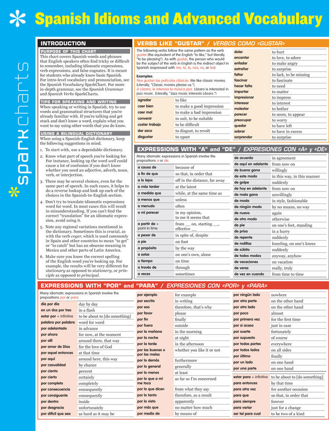 Spanish Idioms and Advanced Vocabulary SparkCharts