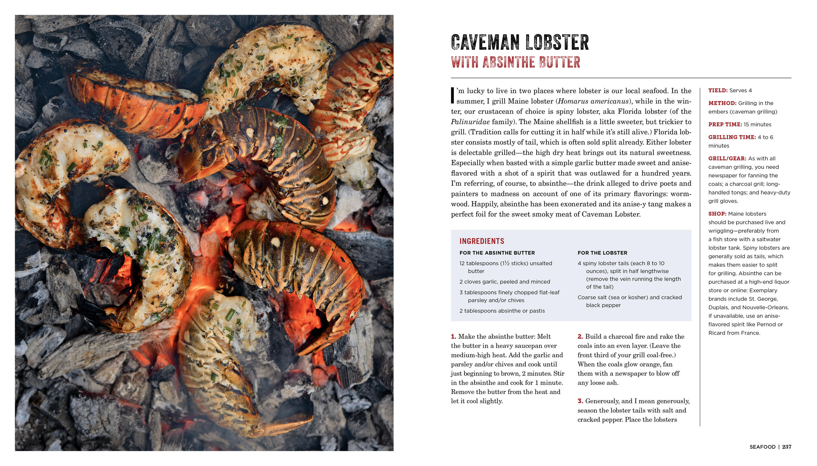 Reinvent steak with reverse-seared beef tomahawks, dry-brined filets mignons, ember-charred porterhouses, and T-bones tattooed with grill marks and enriched, the way the pros do it, with melted beef fat. Spit-roast beer-brined cauliflower on the rotisserie. Blowtorch a rosemary veal chop. Grill mussels in blazing hay, peppery chicken under a salt brick, and herb-crusted salmon steaks on a shovel.