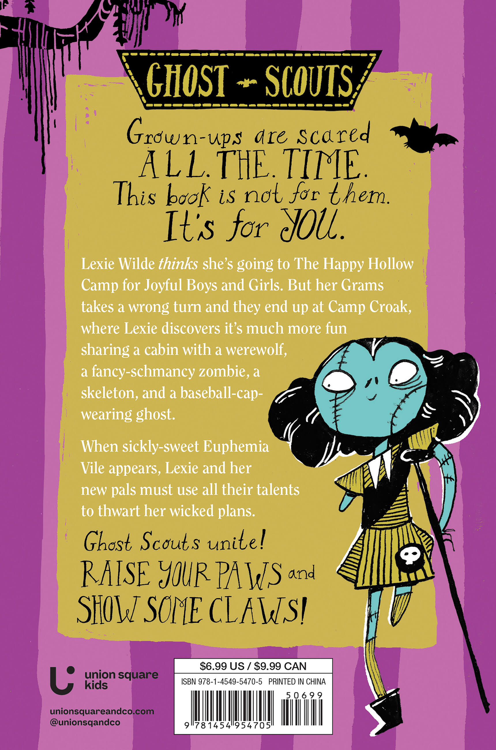 Summer camp involves all the things that Lexie hates—sunshine, smiling, and sports. But luck seems to pass her way when her grandmother takes a wrong turn and accidentally drops her off at Camp Croak, a creepy campground based in a Kraken-filled bayou that is run by conjoined triplet witches. Now Lexie is bunkmates with an anxiety-ridden werewolf, a grumpy living skeleton, and a tiny ghost who will do anything to protect her friends.