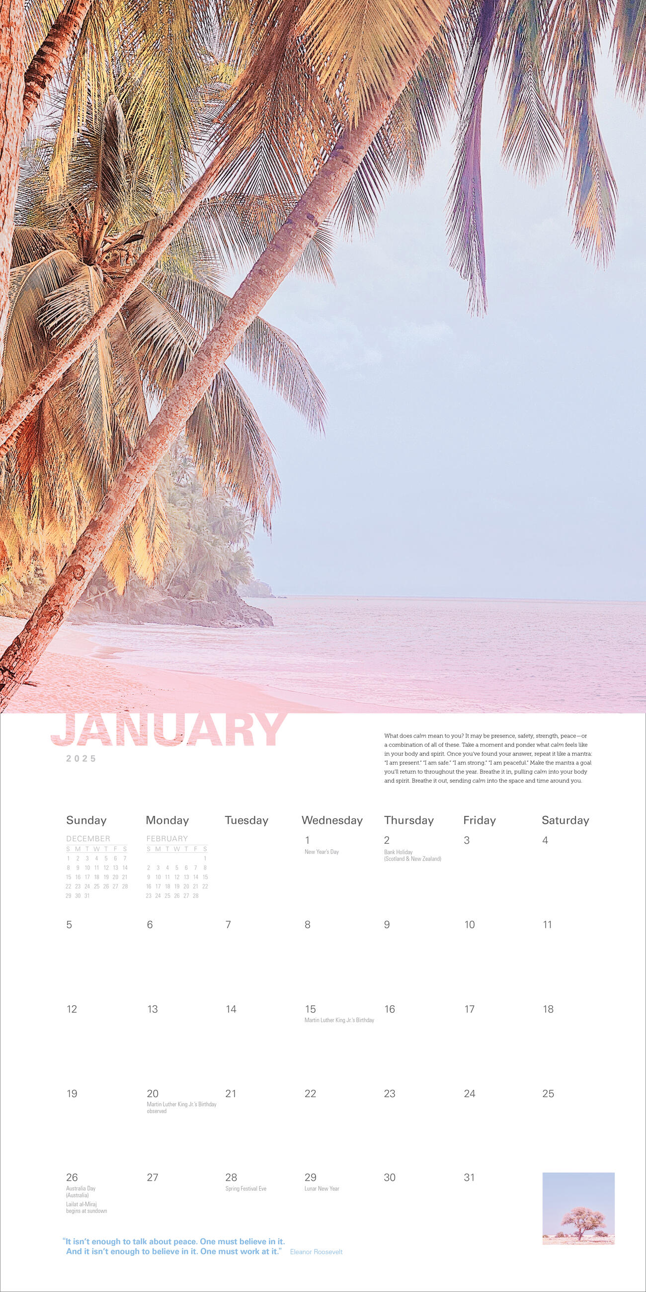 Cultivate tranquility and inner peace with this year of pastel-hued nature photographs and inspirational quotes.