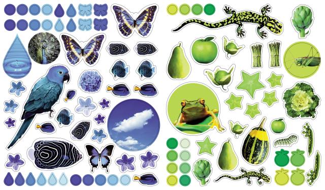 Containing stickers in every color of the rainbow, each page is full of vibrant, photorealistic images sorted by color (orange is for tigers, clownfish, pumpkins, parrots, and carrots!). Whether on windows, notebooks, lunch boxes, or scrapbooks, these peel-and-place stickers are perfect for creating your own work of art anytime, anywhere, and are designed to be stuck on, peeled off, and stuck on again without tearing or losing their “stick.” The books’ inside covers are glossy illustrated backgrounds on which kids can create lively and original sticker scenes―and then change them whenever they like.